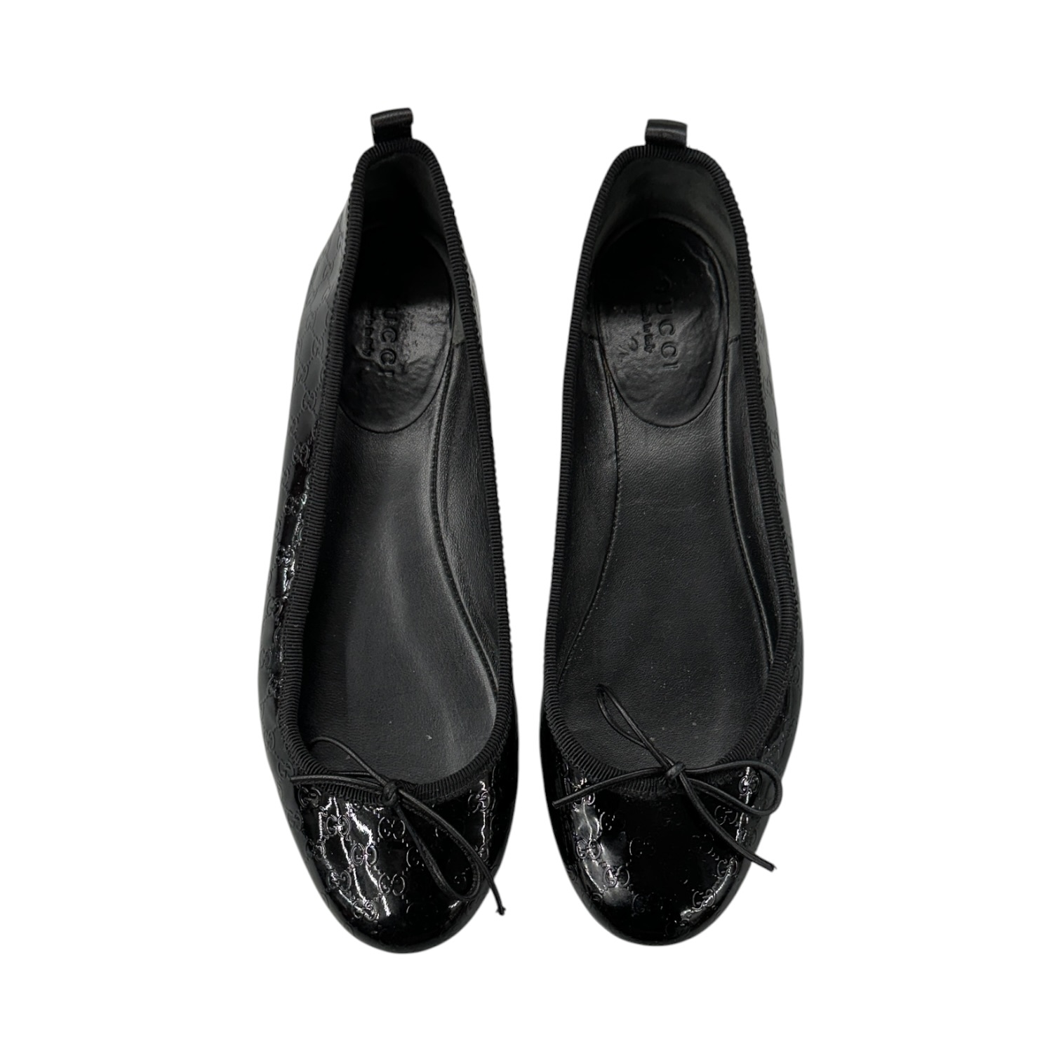 Gucci Patent Black Leather GG Monogram Ballet Flats Shoes